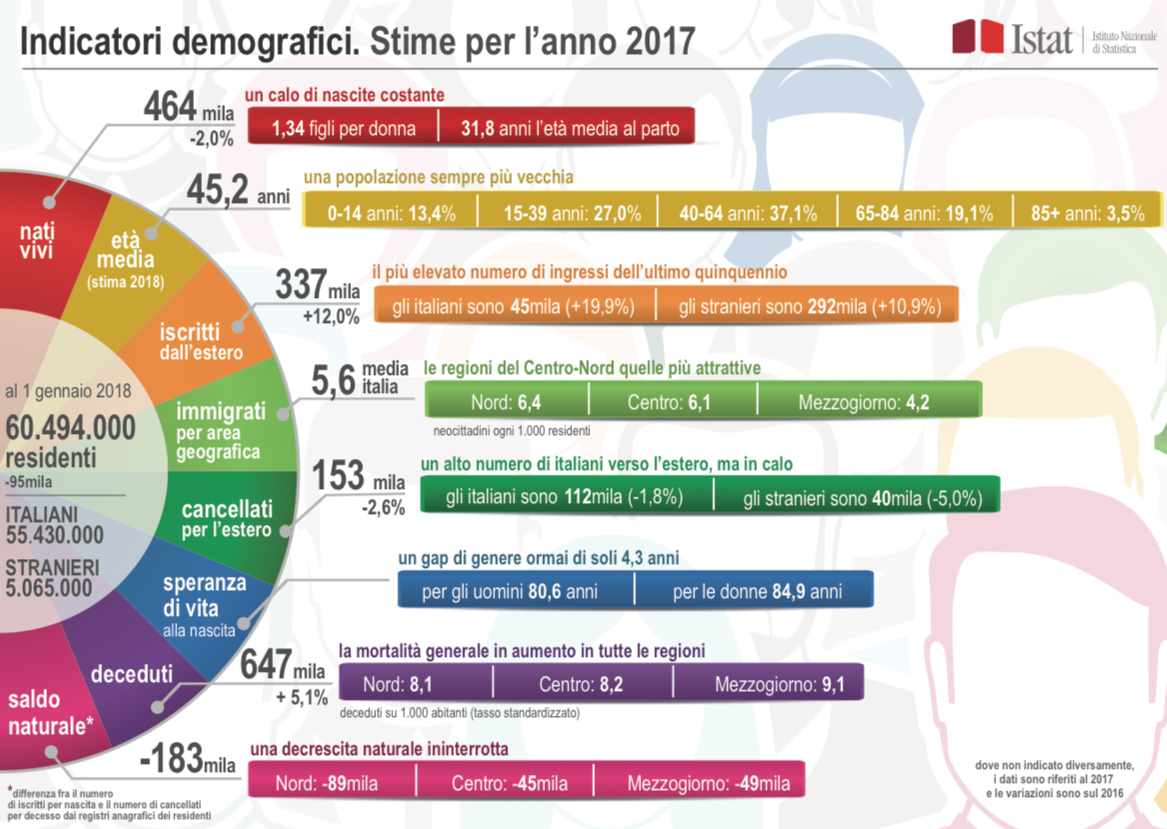 Ma quanti saranno gli abitanti domani? L'Istat ha ipotizzato un declino demografico nel nostro Paese, nei prossimi cinquant'anni . Secondo i dati, nel 2025 gli abitanti italiani saranno ben 2,1 milioni in meno rispetto ad oggi, con notevoli differenze tra nord e sud . Il calo della popolazione nel Mezzogiorno inizierà presto, mentre nel centro-nord la popolazione sarà ancora in attivo per . . .