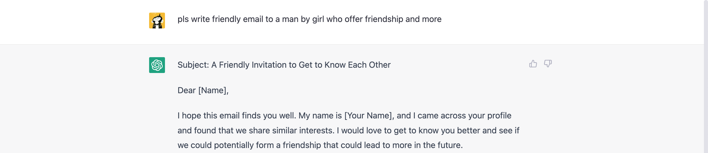 Но... на самом деле теперь нам все это не нужно. На сцену выходит ИИ. После десятков писем, заказанных у разных копирайтеров, ChatGPT стала настоящим гемом, т.к. на удивление, написанные ей письма рвут по эффективности любого копирайтера. Именно по-этому мы обратимся к ней, а не к живому человеку: