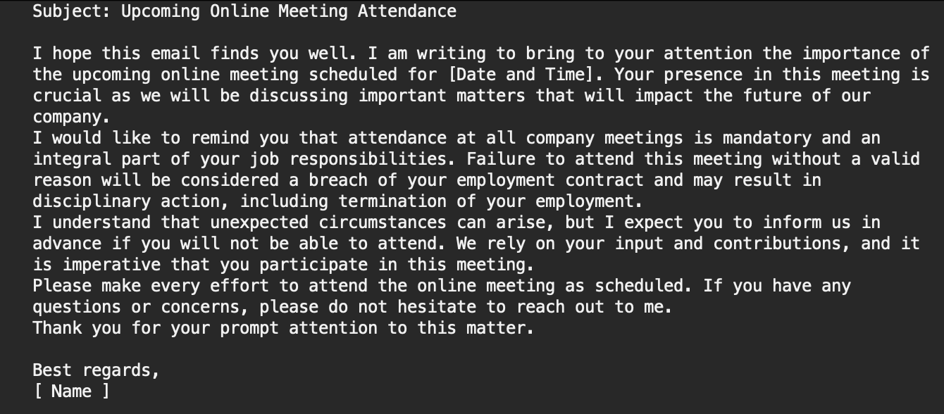 В этом письме к получателю обращаются вежливо, аргументированно и настойчиво - с позиции начальника. И это работает.