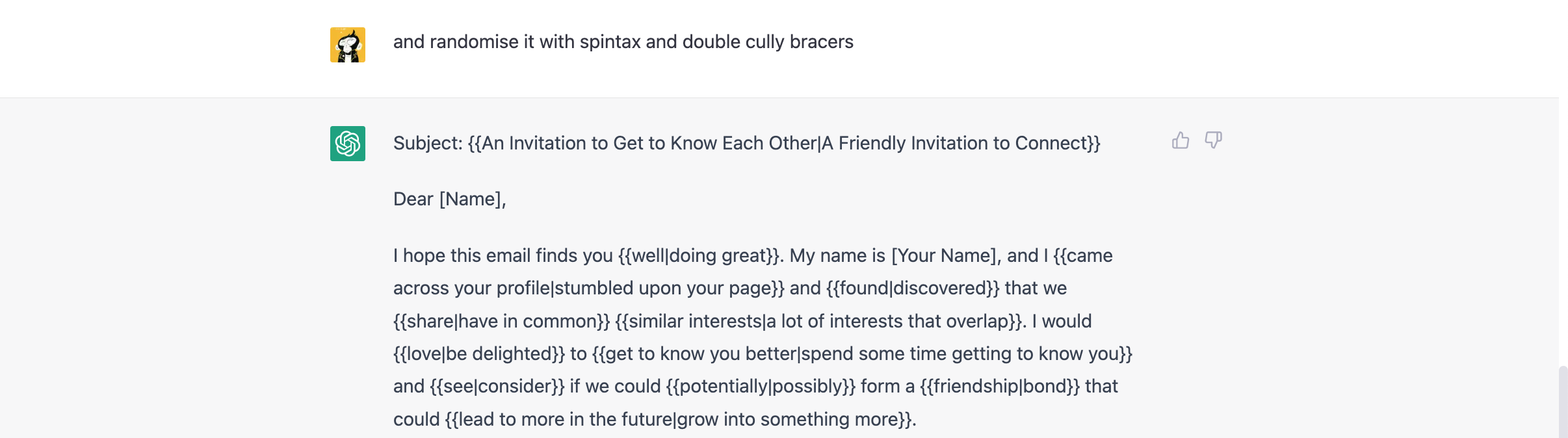 Теперь попросим ChatGPT рандомизировать текст письма для нас: