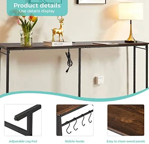 Inches Extra Long Console Table with Outlet and USB Ports, Narrow Entryway Table, Sofa Table Behind Couch, Skinny Hallway Table, - Купить с бесплатной доставкой