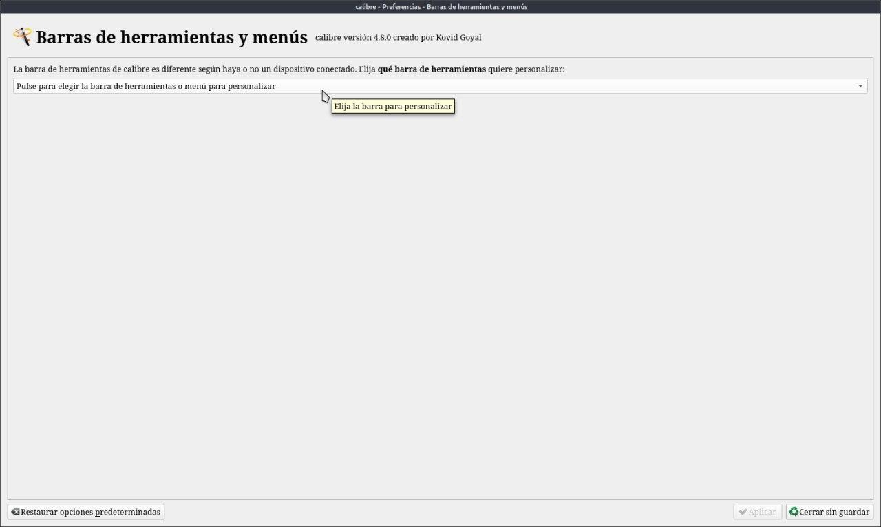 Para agregar el icono de incluir metadatos lo que tenemos que hacer es: Ir a Preferencias/Barra de herramientas y menús y tocamos donde dice Pulse para elegir la barra de herramienta a personalizar