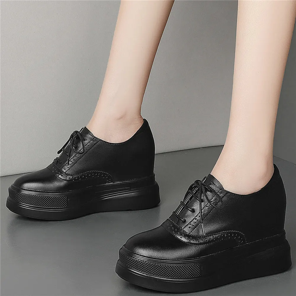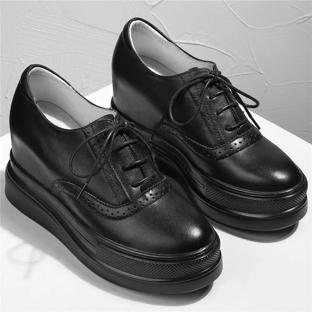 «Increasing Height Platform Shoes Women's Genuine Leather Fashion Sneaker Laace Up Wedge High Heels Round Toe Oxfords Punk Goth» по лучшей цене на рынке! Всего за 73$ (6935рублей)
