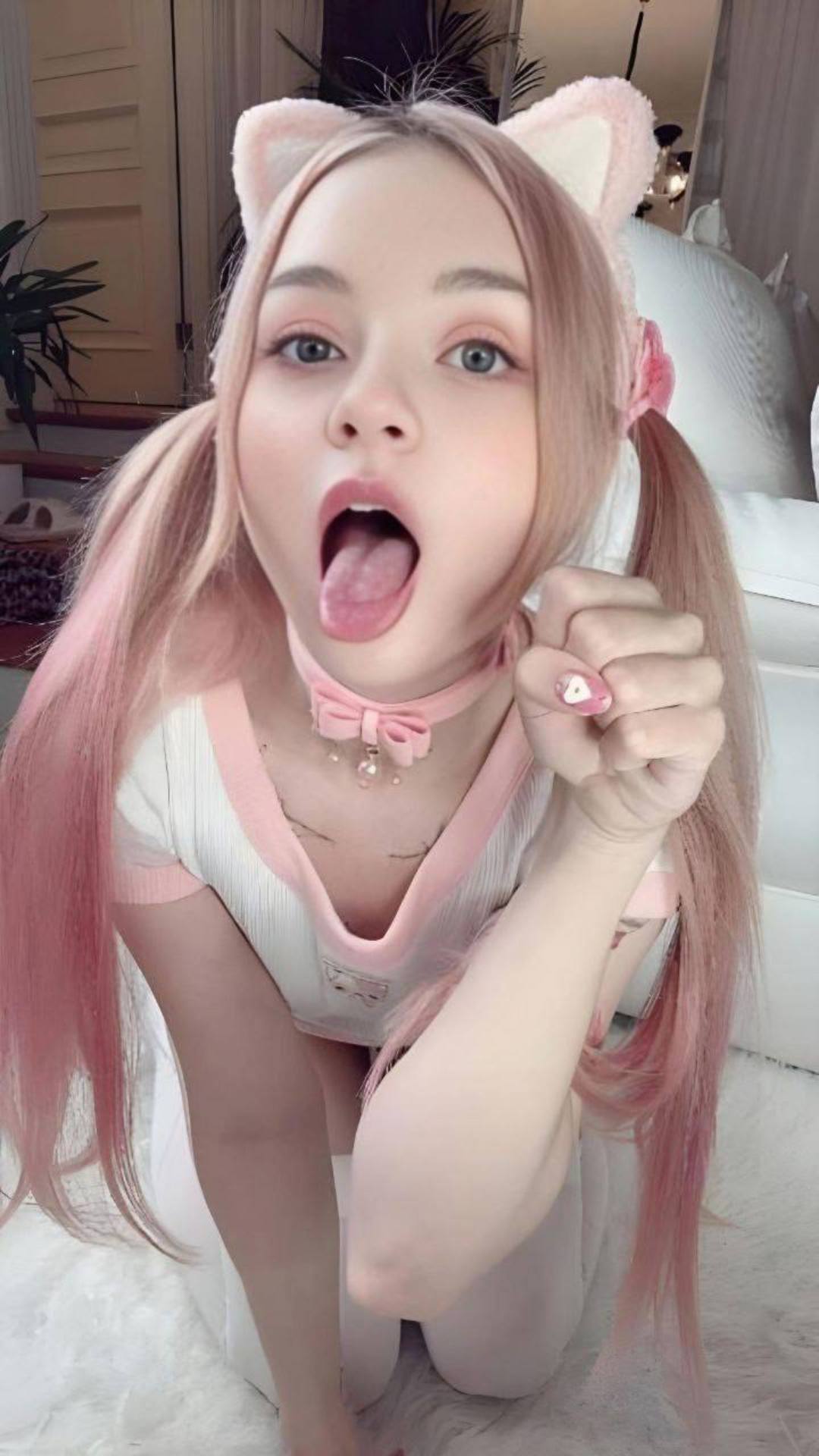 Bewitching Brunette Hair Bonks pink fake penis
