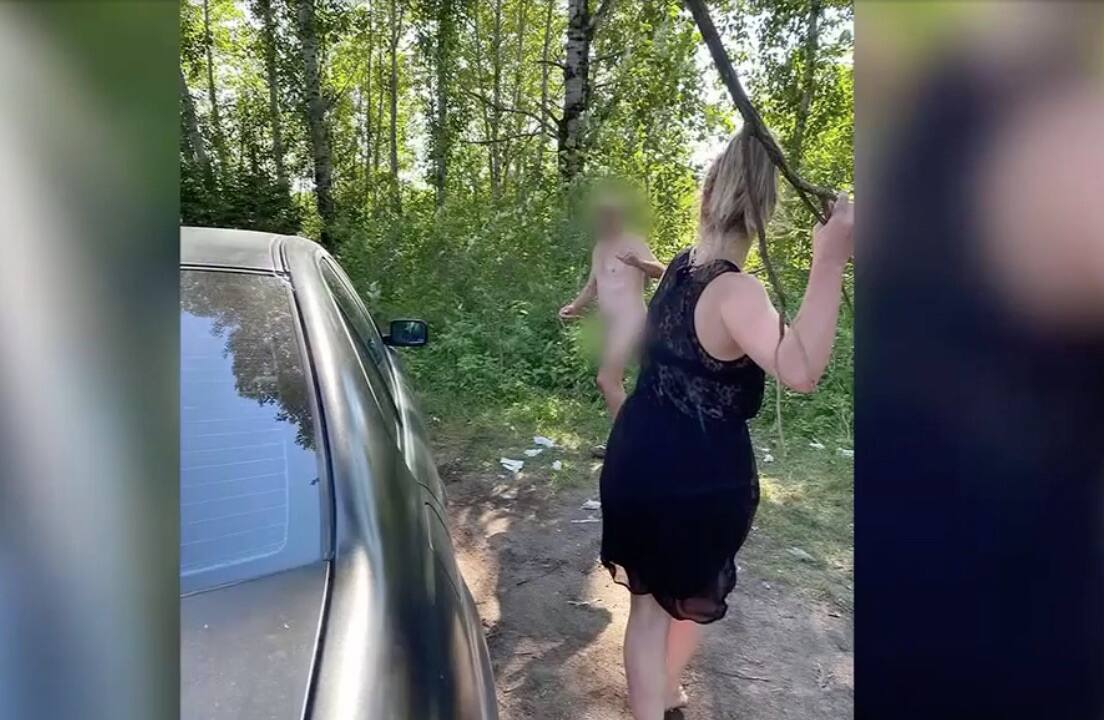 Exhibition sensuelle près d'une voiture