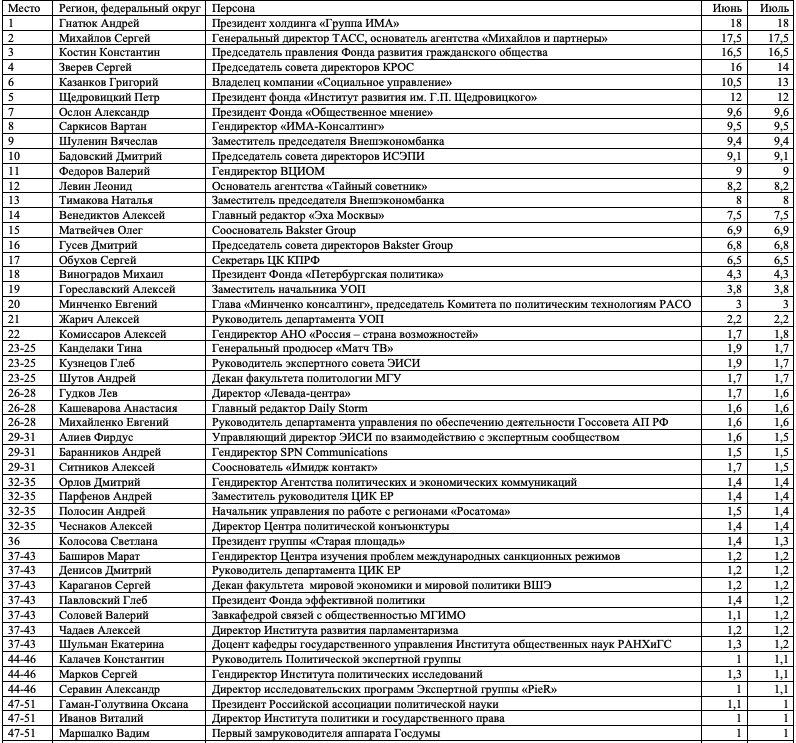 Давыдов.ИндексПредставляем вашему вниманию июльский выпуск «Индекса власти».