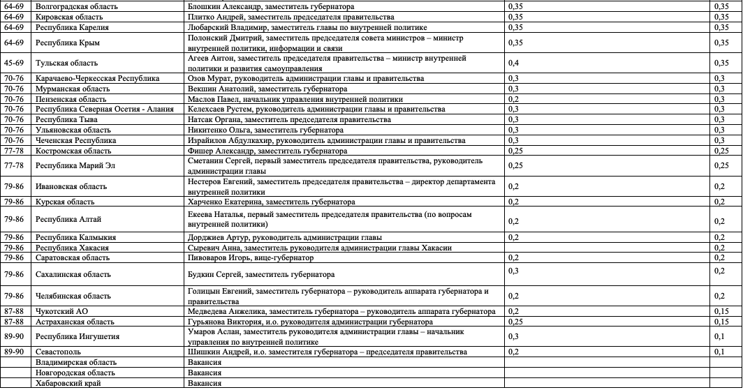 Кураторы внутренней политики в регионах