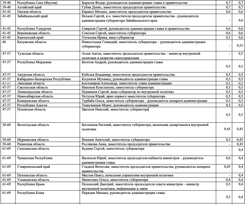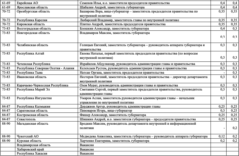 Кураторы внутренней политики в регионах