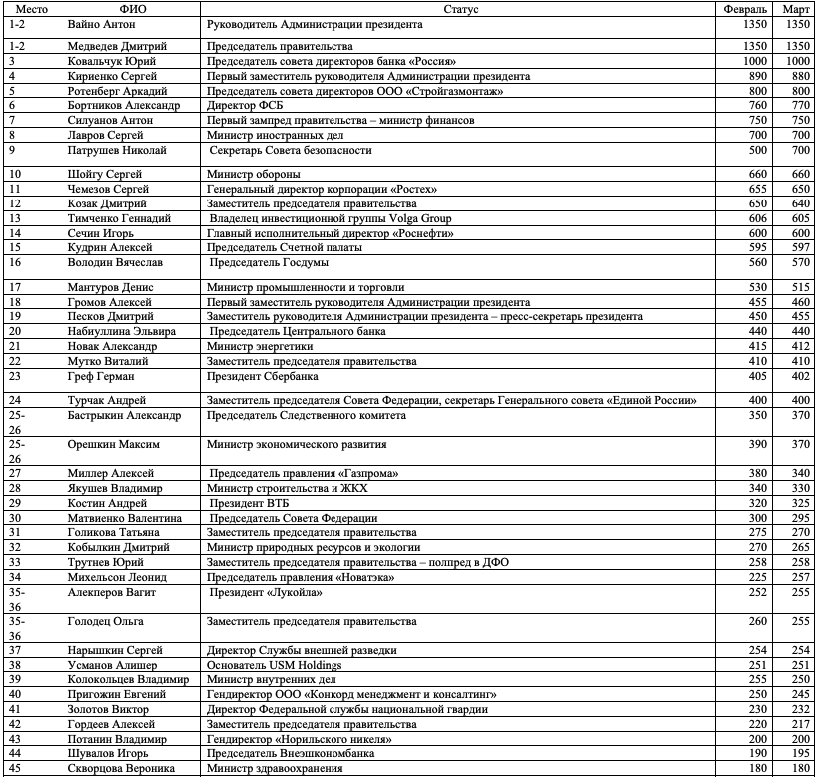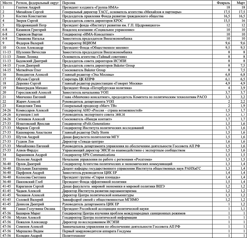 Давыдов.ИндексПредставляем вашему вниманию мартовский выпуск «Индекса власти».