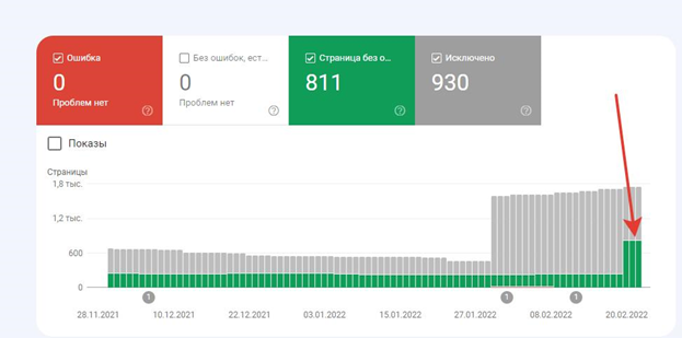 (Спойлер – по факту на картинке выше – вы видите как раз часть страниц уже попало в индекс – около 600 новых).
