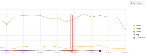 Где исправлен Сайтмап – видно по взлёту серых столбиков J