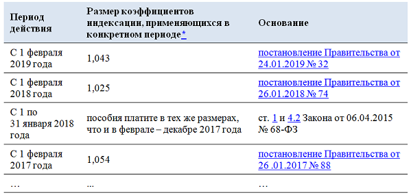 Индексируются ли пособия до 1.5