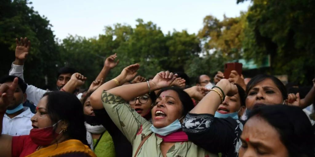 Die Pakistanerin im blauen Hijab schob sich mit einer weißen Touristin nach Hause