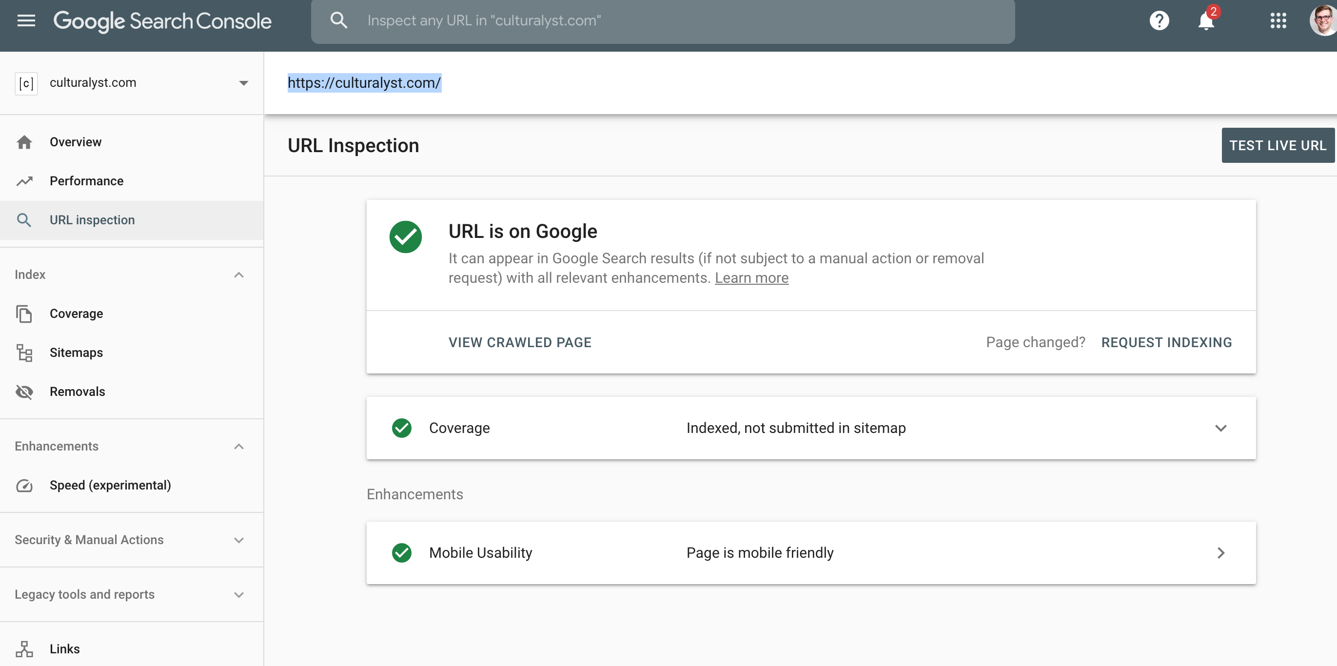Index url found