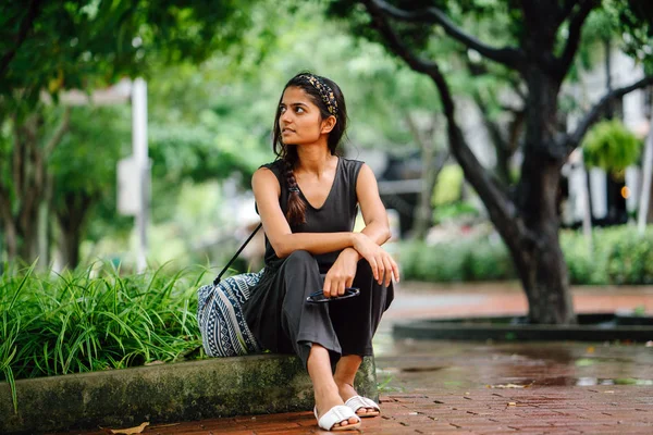 Indienne excitée dans le parc