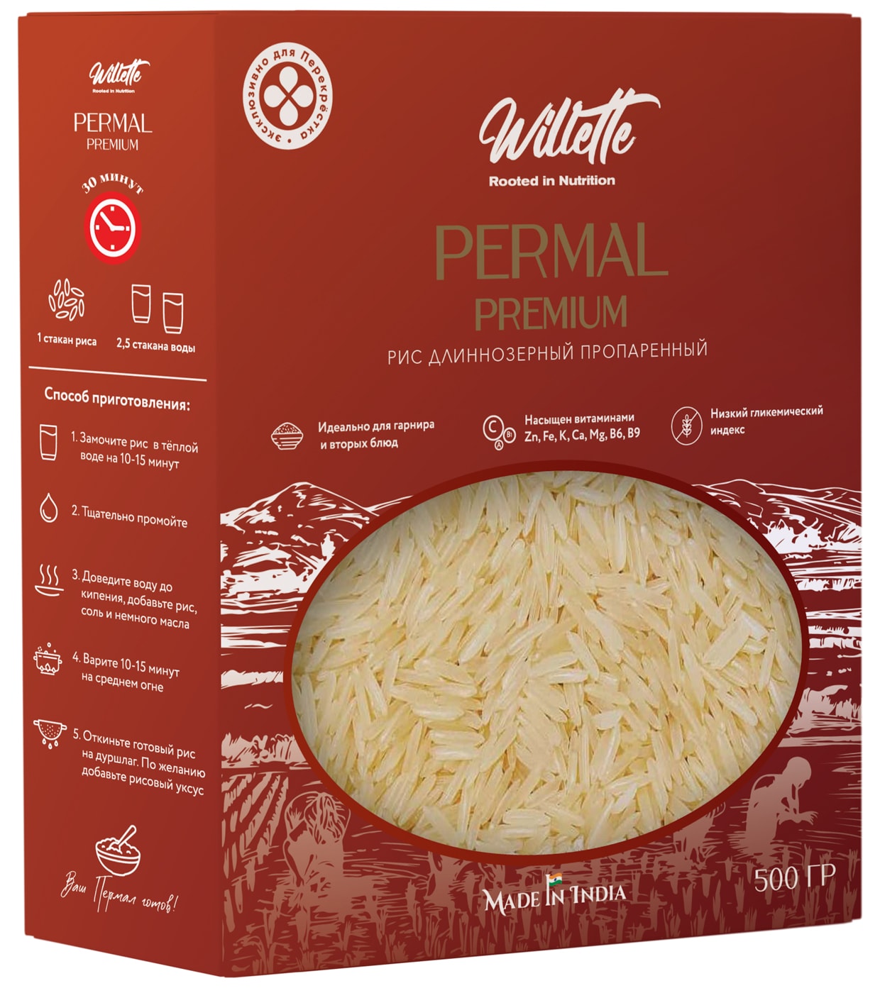 Индийский пропаренный рис длиннозерный