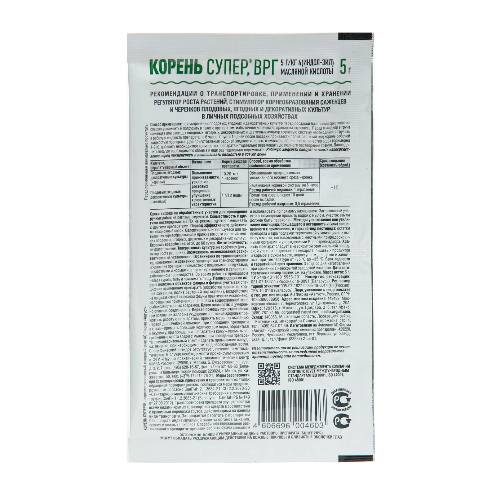 4(индол-3ил) масляной кислоты 5г/кг: ДxШxВ, мм: 3x90x120: Производитель: АО Фирма "Август" Страна производства: Россия: Температурный режим: 23