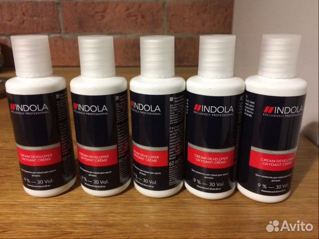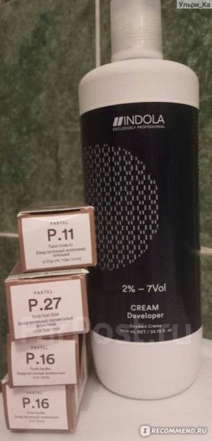Цветовая палитра красок Подготовка состава Краситель смешивается с проявителем «Indola Profession Cream Developer Peroxide», концентрация и объём которого определяются индивидуально в зависимости от особенностей волос и процедуры окрашивания, а также от выбранного тона . Окислители выпускаются в четырёх разных вариациях: 2%, 6%, 9% и 12% .