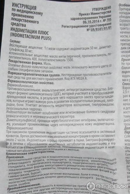 Индометацин плюс мазь 40г инструкция, цена, описание . . .