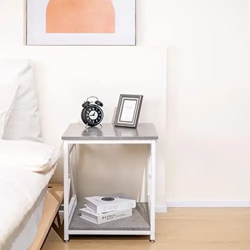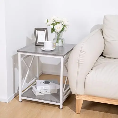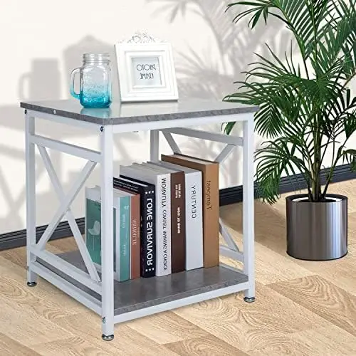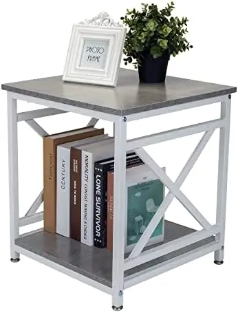 hiYUWUZFSiHere you can buy Industrial End Table Side Table with 2-Tier Storage Shelf, 18'' Square Nightstand Bedside Table X-Design Metal Frame for Small t with free delivery to your post office.
