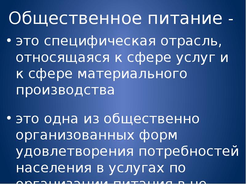 Индустрия питания предприятие общественного питания