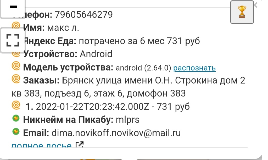 Возможное место проживания: Брянск, улица имени О.Н. Строкина, дом 2, аналогично Катарсису
