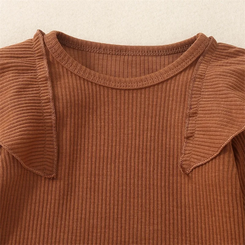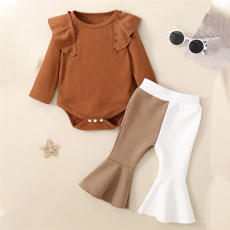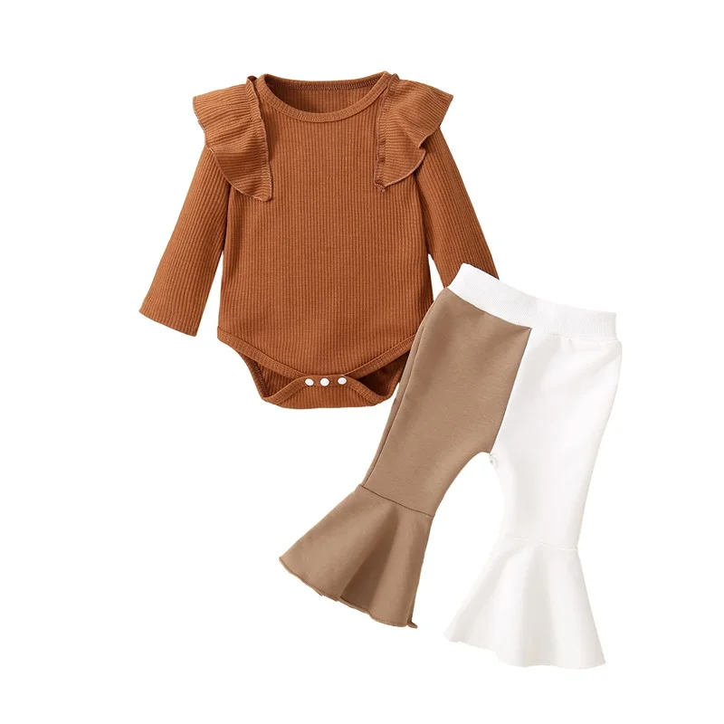 IVcOwrNdHere you can buy Infant Girl Fall 2 Pcs Outfit Solid Color Ribbed Flying Sleeve Romper with Contrast Color Flare Pants with free delivery to your post office.