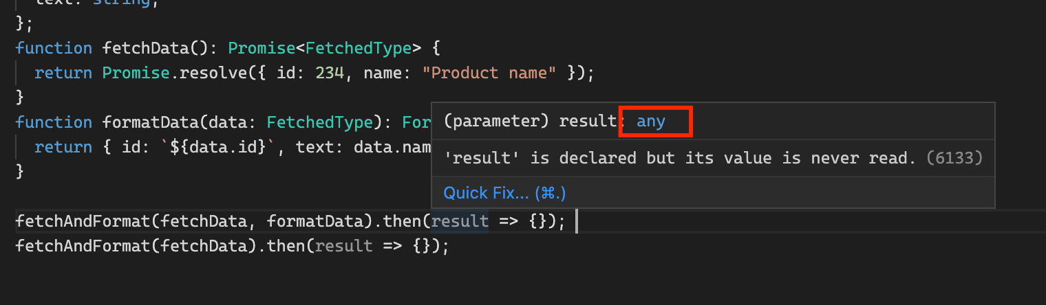 Осталось только добавить возвращаемый тип в сигнатуру fetchAndFormat: