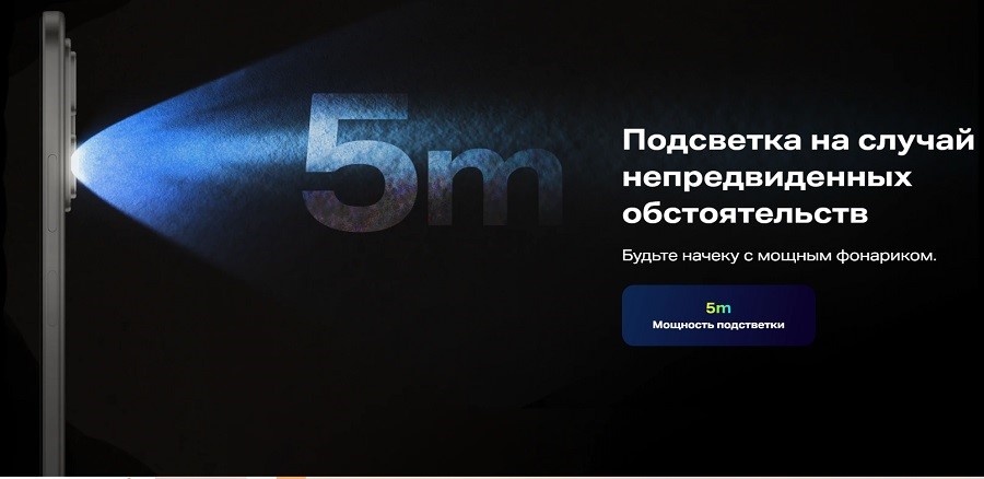 Динамики двойные — передают громкий звук и не позволят пропустить важный звонок или сообщение. Интегрирован разъем для проводного подключения наушников — mini jack 3.5 мм. Предусмотрен светодиодный фонарик с дальностью освещения 5 м, который выручит в сложной ситуации и поможет, например, найти оброненные ключи на темной лестничной клетке.