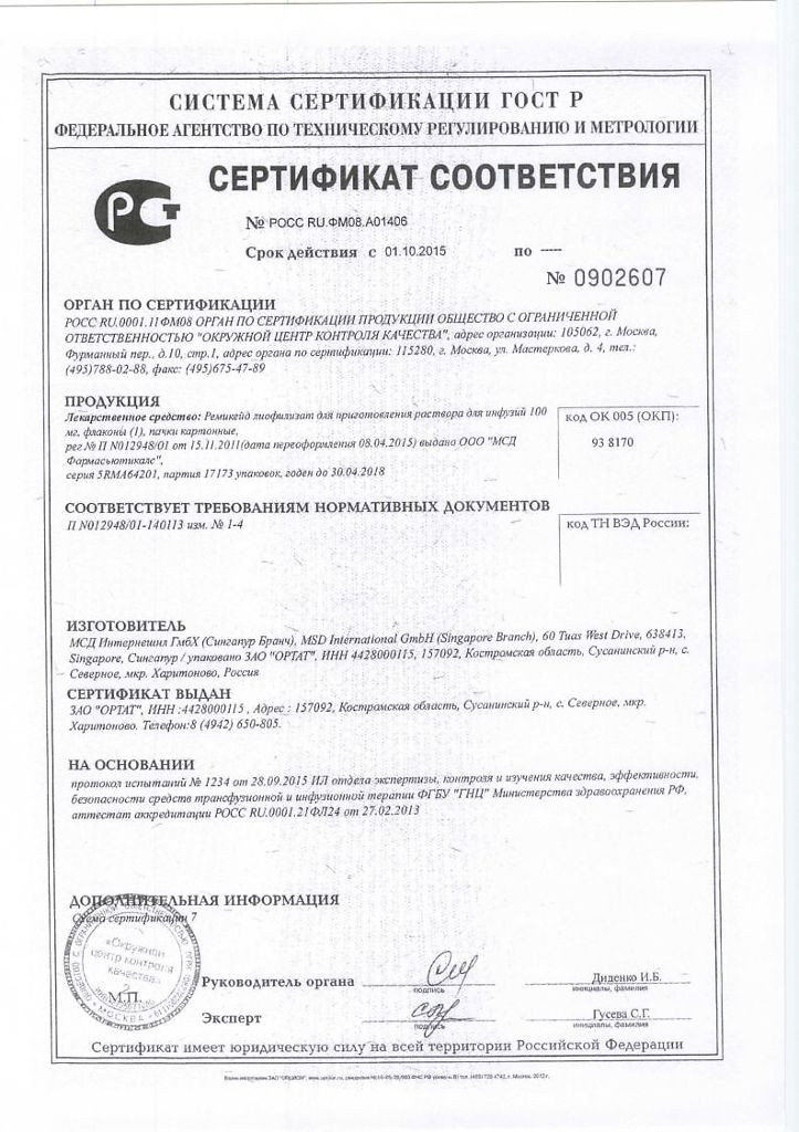 Ремикейд®: инструкция по применению, показания . (Другие . . .