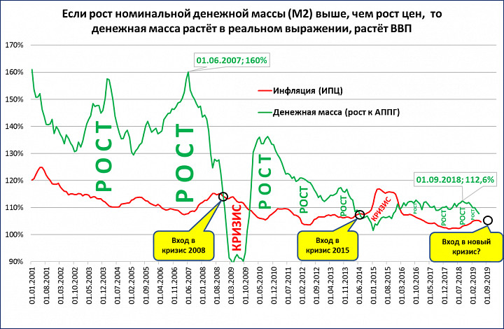 Для реальной денежной массы снижение инфляции – это хорошо.