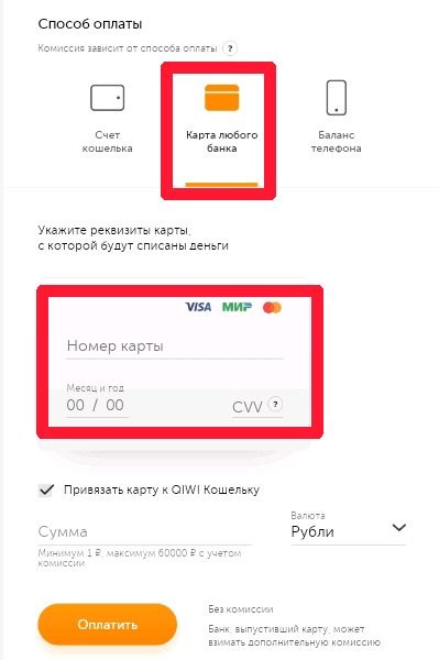 Способ оплаты через карту💳