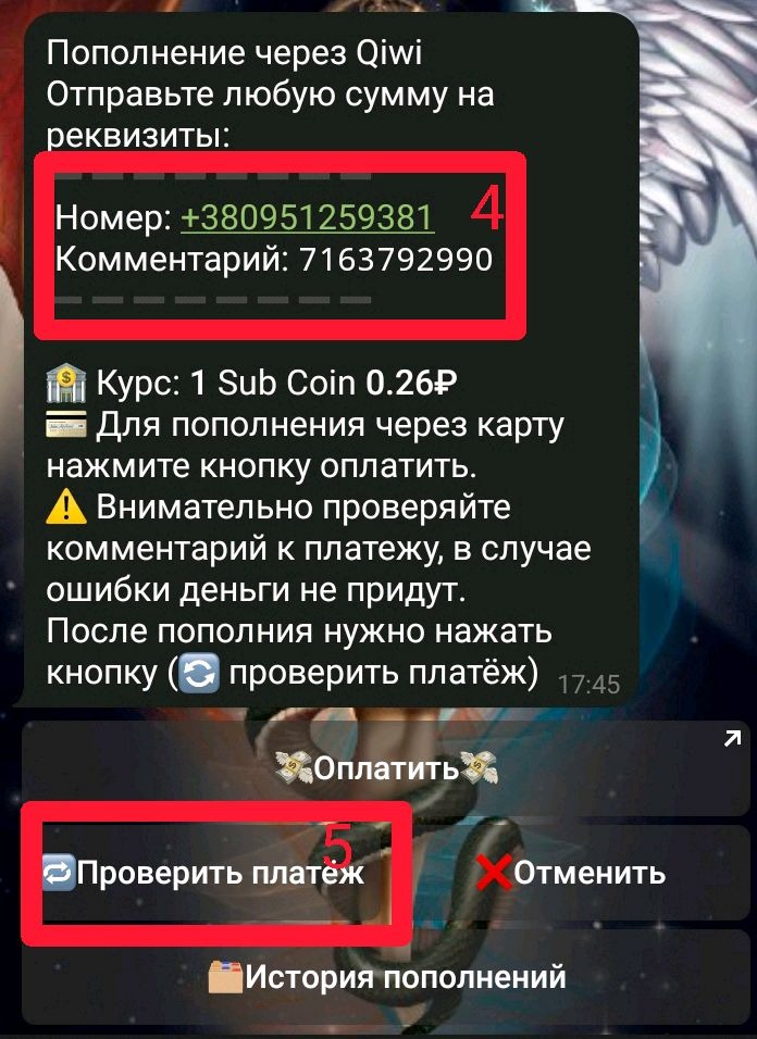 Шаг 3. После оплаты нажать кнопку проверить платёж (5)