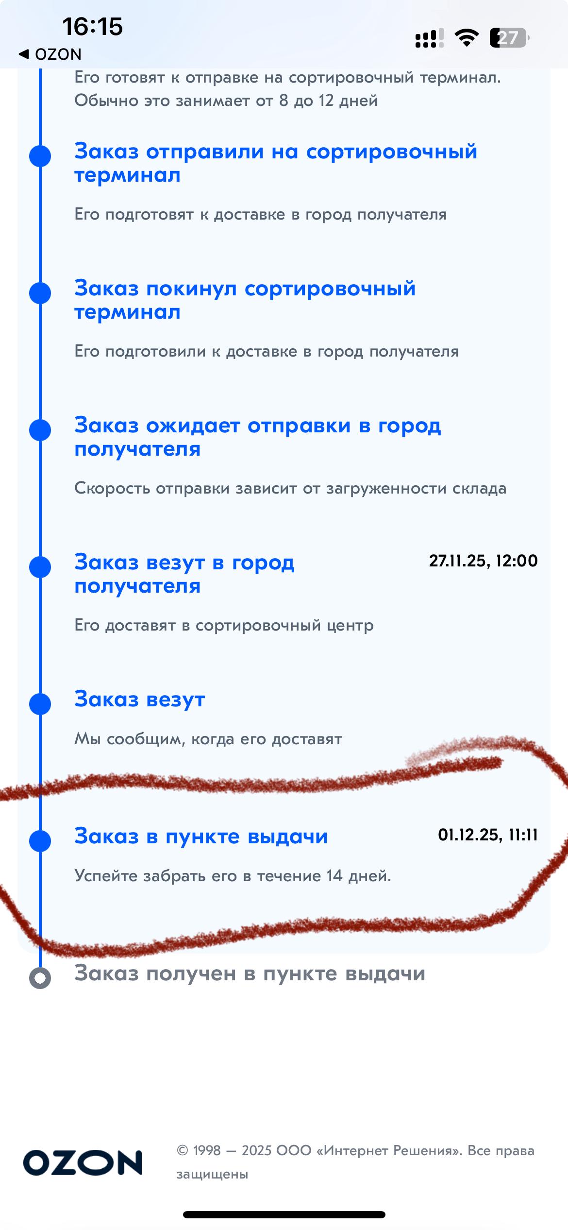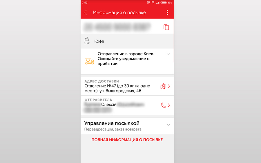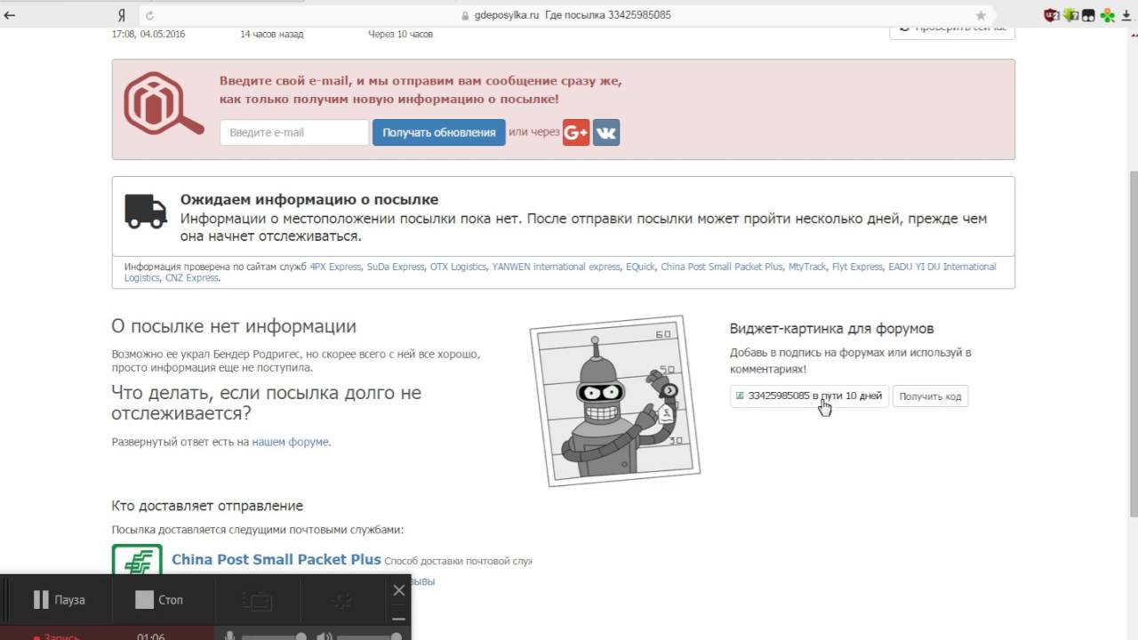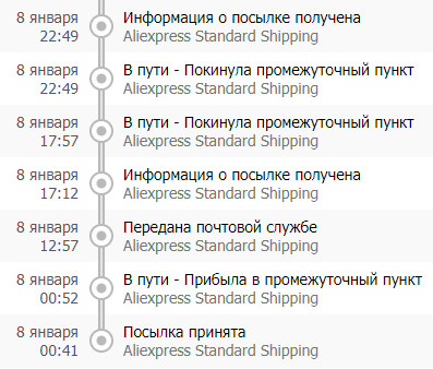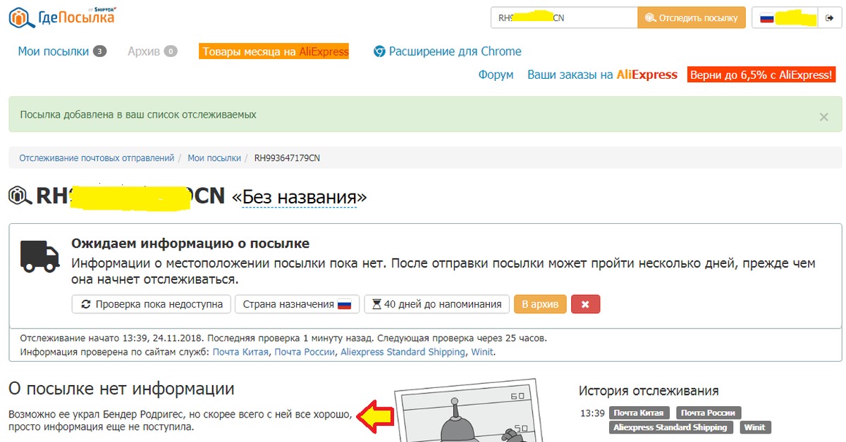 Информация о посылке получена