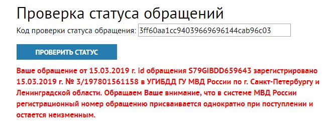 Информация о прохождении обращения по коду