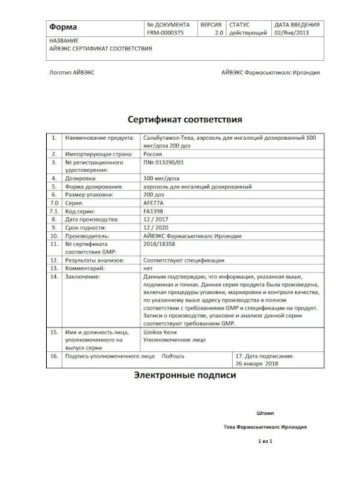 Сальбутамол-Тева: бронхолитическое средство, инструкция по применению, отзывы, цены и . . .
