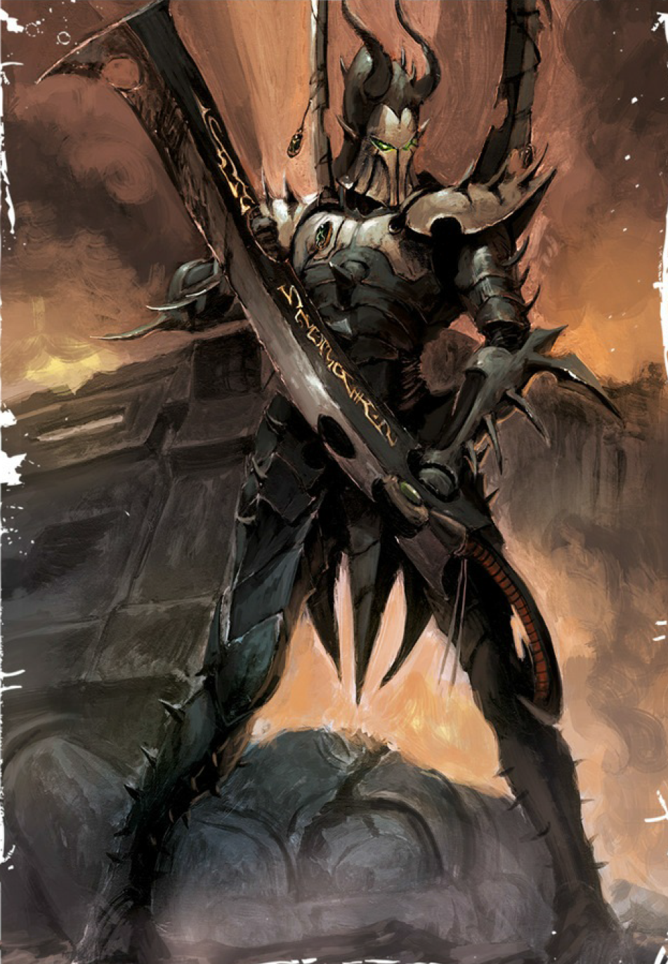 Инкубы наделены змеиной грацией, и в каждом их жесте сквозит едва сдерживаемый порыв к насилию. Всякая деталь целиком облачённого в доспехи инкуба излучает опасность. Его броня покрыта шипами с головы до ног, а шлем с парой громадных острых рогов придаёт ему демонический вид.