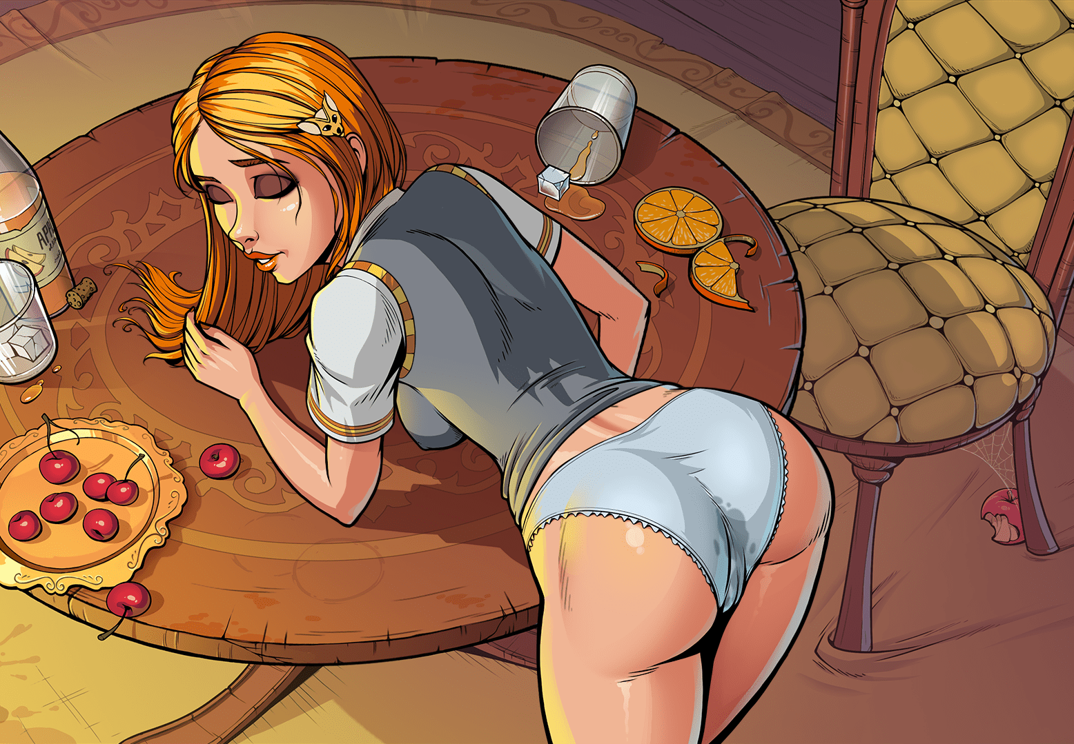 Gang bang bukkake featuring a sexy redheaded babe