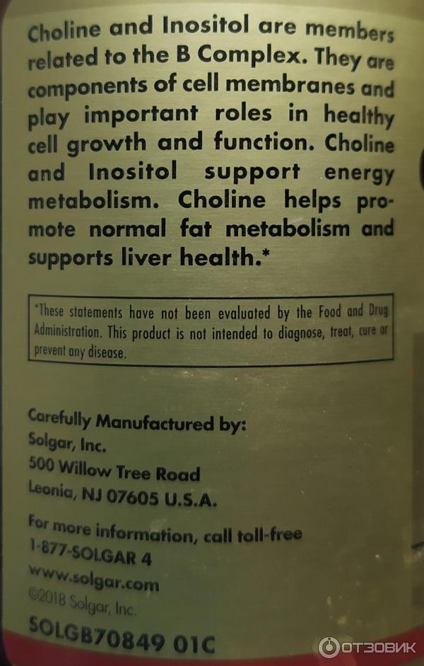 Солгар Холин/Инозитол 500 мг капсулы, 100 шт . - купить, цена и отзывы . . .