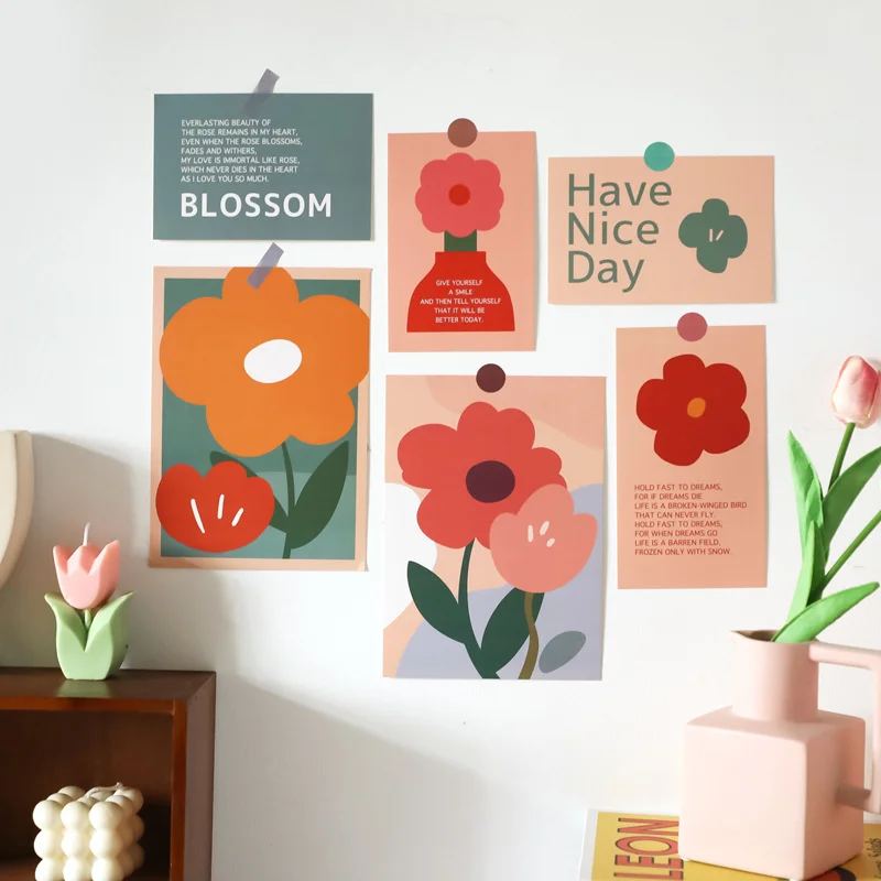 Ins Colorful Abstract Flower Decorative Card Artistic Atmosphere Postcard Diy Background Wall Photo Props With Sticker 6 Sheets - Купить с бесплатной доставкой