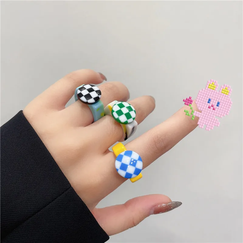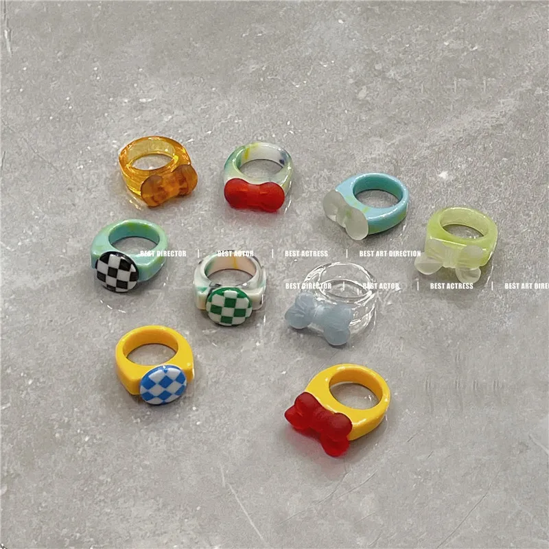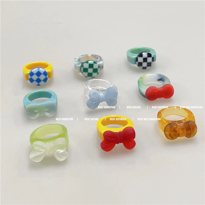 «Ins Wind New Trend Swoosh Bow ~ Checkerboard Ring Resin Girl Index Finger Ring Cartoon Image Ring Boy Ring» по лучшей цене на рынке! Всего за 4$ (380рублей)