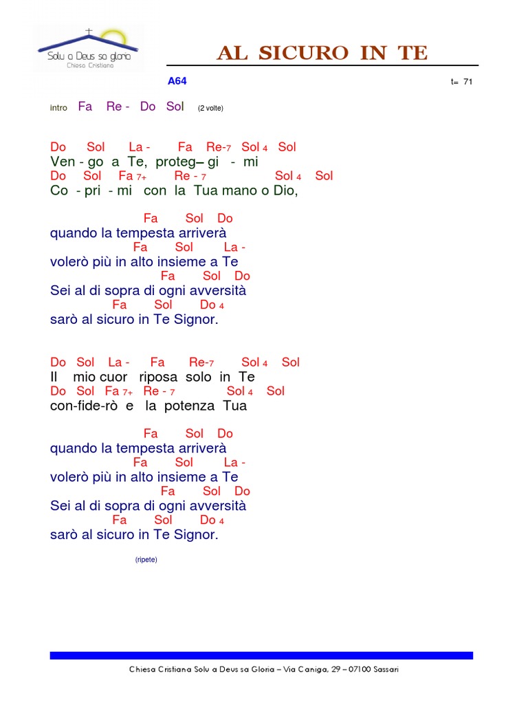 Insieme a te, uniti a te . La nostra vita si trasformerà . Insieme a noi, accanto a noi . Ti sentiremo ogni giorno Gesù . E con la forza che viene da te . Cammineremo nel mondo Signor . Con questo pane che hai dato a noi . Riceveremo la vita di Dio . Insieme a te, uniti a te . La nostra vita si trasformerà . Insieme a noi, accanto a noi . Ti sentiremo . . .