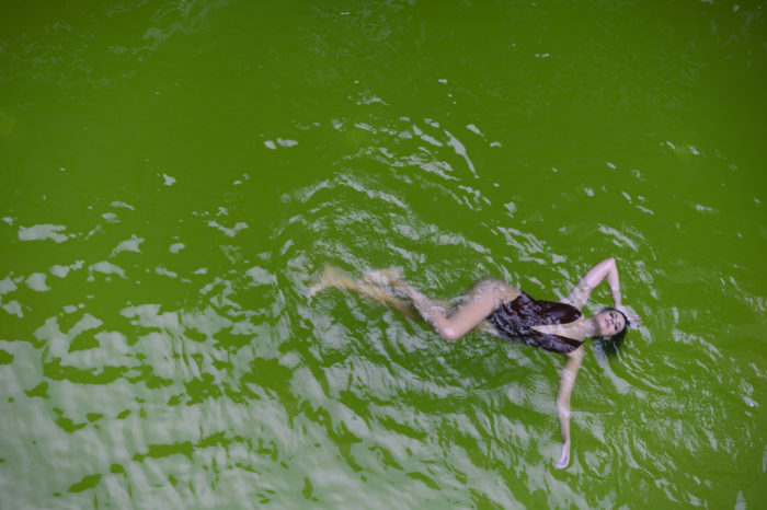 Una ragazza che si masturba in piscina