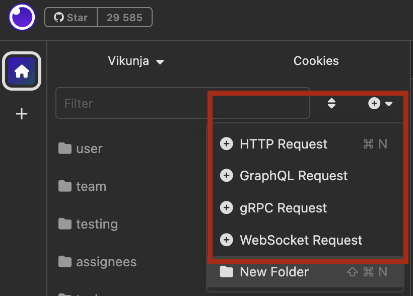 Insomnia поддерживает отправку запросов через HTTP, gRPC, GraphQL, WebSocket.