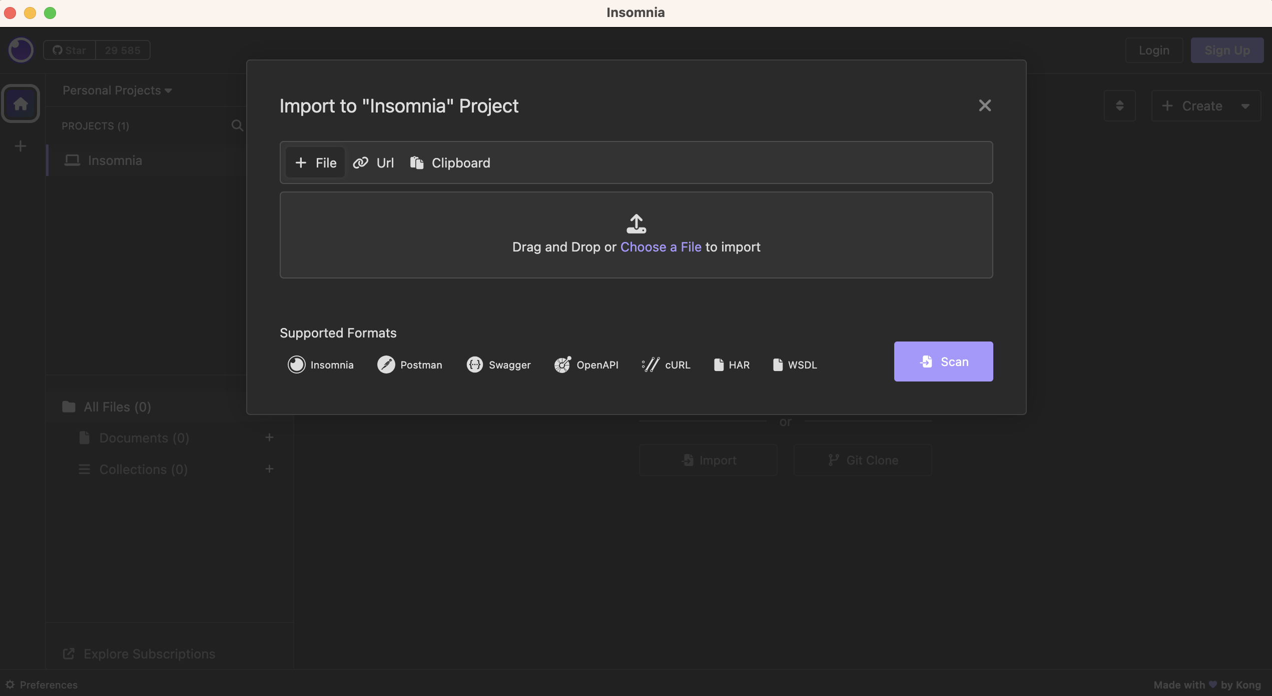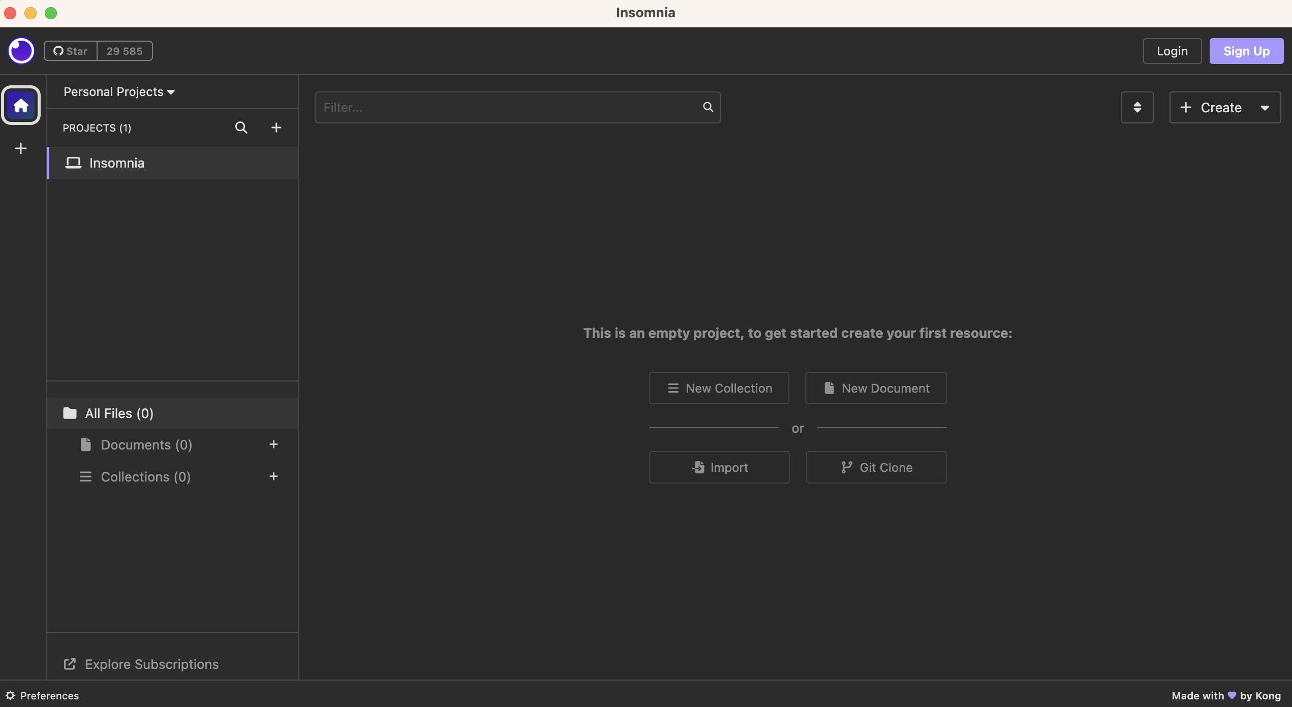 Открыть приложение Insomnia (версия Insomnia.Core-2023.4.0 для Mac / Windows). Я буду использовать приложение на Mac.