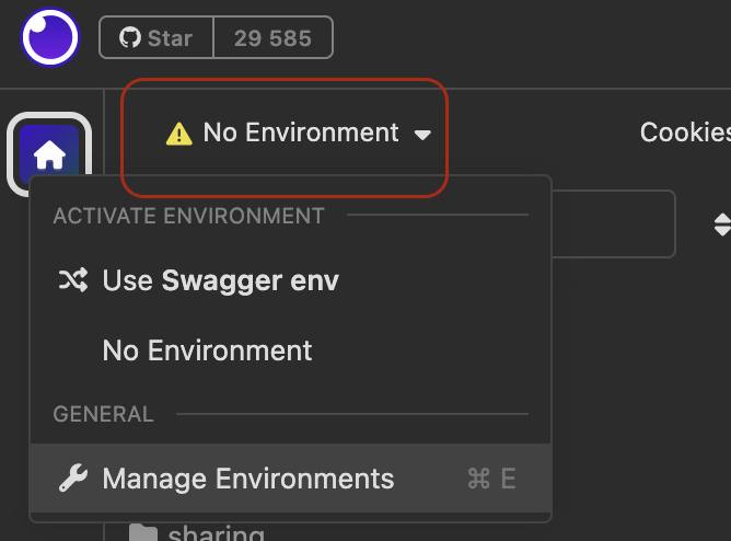 Нажать на "Manage Environments".