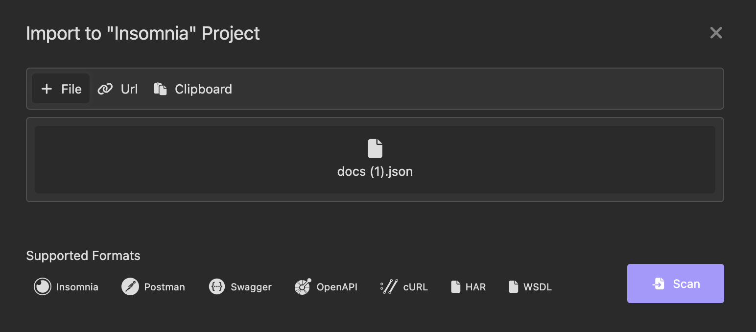 Нажать на кнопку "Import OpenAPI" -> Выбрать "File".