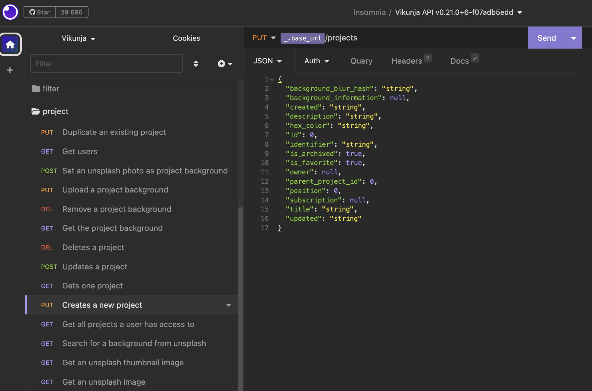 Preparing request to https://try.vikunja.io/api/v1/projects