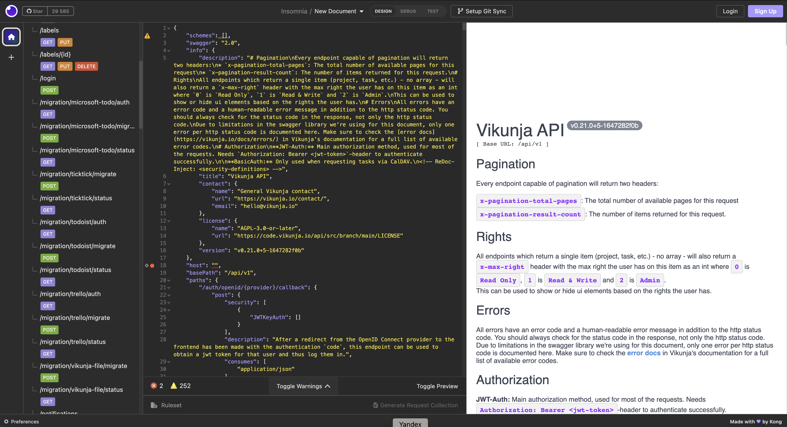 Отображена документация "Vikunja API".