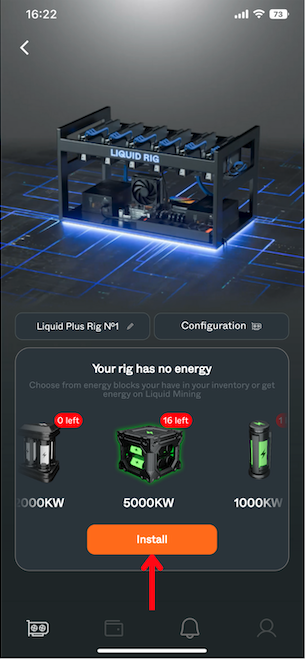 Congratulations! You have successfully installed energy into your Rig and now ready to start mining.